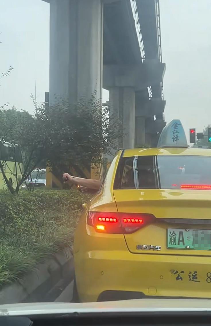 重庆的出租车司机抬起了弹弓,从车上出来。公